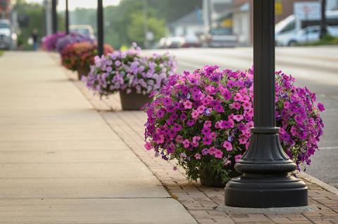 The small village of Bluffton, Ohio has more flowers in its community of 4,125 residents than most large and super large cities have. The first time you drive down Main Street, you’ll notice the difference in the look and the feel of this community and that there is something very special going on here. Upon arriving downtown, stunning floral displays greet the eye and lift attention to the hanging baskets secured to light posts and along the street both curbside and next to the buildings. The floral feast for the eyes doesn’t end on Main Street. Containers of flowers can be found around Bluffton University, at municipal buildings and parks. Every container and bed the judges saw were floriferous and provided a unified look to Bluffton. The flowers are lush, large and profuse. They are on the city streets, hanging from light poles, in front yards and back, around businesses, at the churches and on the university campus. Virtually everywhere you look, you will be delighted by beauty and the color, compliments of the addition of flowers to this small village. Community gardens, garden-of-the-month awards, and Monarch Way Stations all add to the displays of flowers in Bluffton. The stunning pots create an inviting downtown business district and make the parents and new college students feel right at home.